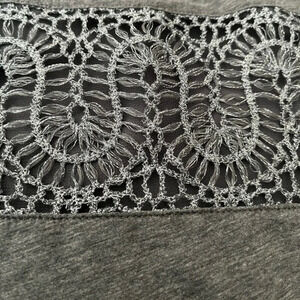 J Crew tank top, size XL. This tank top has a beautiful crochet design inset into the front of the top. It measures 24” shoulder to hem and 20” pit to pit. The lining hangs about 2” past the hem. There are no holes or rips.