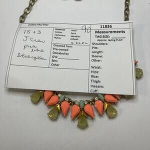 Picturing the fashion costume signed jewelry necklace by J.Crew J. Crew J Crew gold tone peach and citrine faux jewels crystals statement ** Length: 15" plus 3" extension ** Condition: Pre-owned condition, gently worn, May Need a light cleaning before wear. * I ship quickly from a clean smoke-free home *** Inventory: bag 90 11836 don't miss this necklace beads resin boho trendy versatile jewels by J. Crew JCREW perfect for contemporary career or casual wear