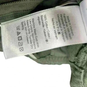 J. Crew khaki “cypress” green versatile soft cotton casual tie and button front camp pants. Perfect fall color! These pants have never been washed and are in extremely good NWOT condition. However, there is a very small little stain on the back of the right leg at the bottom. You’ll never see it without it being pointed out. I pointed it out in the photographs.