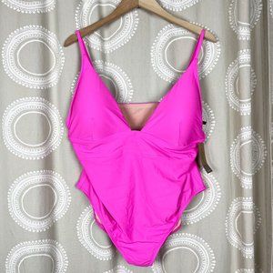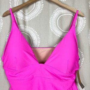 NWT J. Crew deep v-neck french one-piece swimsuit neon flamingo pink 20 padded cups