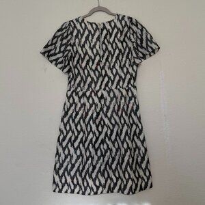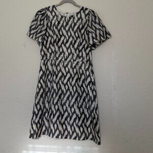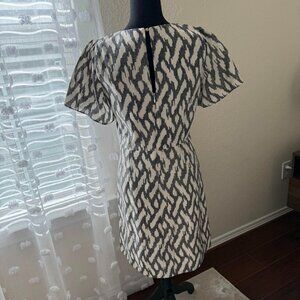 J. Crew dress in gray and cream 100% silk ikat print with cap sleeves size 4