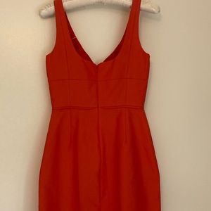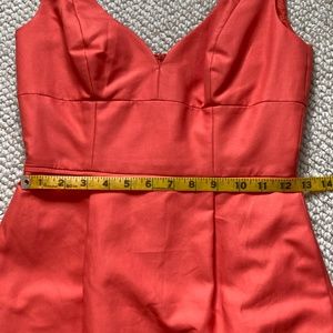 NWT. Gorgeous J.Crew dress/cocktail dress, pretty coral color, fully lined, with boning in bodice to support bodice. Has side pockets, back kick pleat. Fabric is 100% cotton (poplin type), lining poly. Wear to office with blazer, straight to evening function. Can be dressed up or down. Wear to a summer wedding!