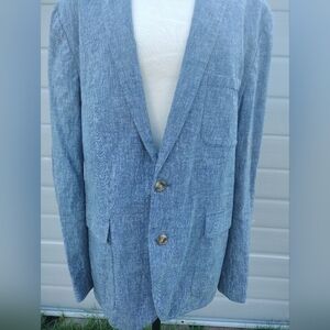 J Crew (e8647) Mens Blue 2 Button Blazer / Sports coat - Size XL Linen Blend