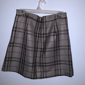 Gray and black plaid mini skirt. 2 pockets in the front, zip closure in the back. Never worn- new with tags