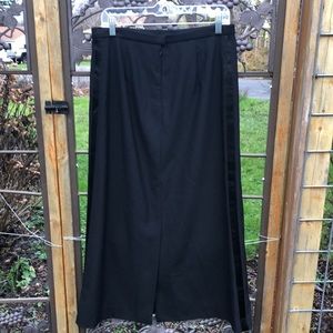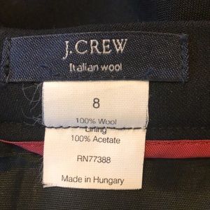 J. Crew finely woven black wool maxi skirt size 8. Beautiful and classic. There is a strip down the side like a tux. Great infrequently worn condition. Garment comes from a pet and smoke free home.