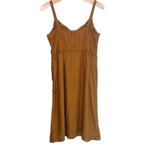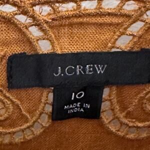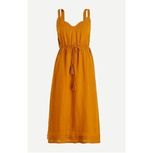 J. Crew golden brandy linen drawstring dress with embroidery size 10