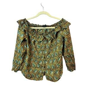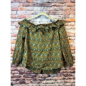 J. Crew green Ratti Elephant Animal Print Ruffle Off-Shoulder Top womens size 10