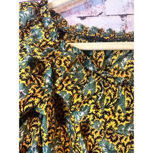 green J. Crew Ratti Elephant Animal Print Ruffle Off-Shoulder Top , cropped