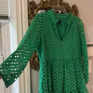 Adorable dress from J Crew! Bright green eyelet design, long sleeves with open eyelet to see through. Ruffle bottom, side zip & fully lined!