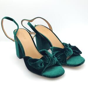 Free USPS Priority Mail shipping on these luxurious J. Crew green velvet knotted peep-toe sandals with block heel, women's size 10, featuring a soft velvet upper accented by a chic knotted bow detail, open peep-toe design for a flirty touch, and sturdy block heel for comfortable elevation and all-day wear. This elegant style blends rich emerald green hues with versatile sophistication, perfect for dressing up jeans or pairing with a little black dress. Please check photos for any damage and condition to ensure they meet your expectations. If you have questions or offers, feel free to message me!
