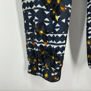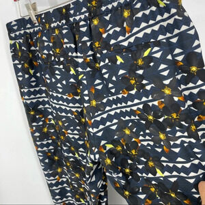 Elastic waist geometric print with Hawaiian florals. Size 10. Zipper pockets. Waist is 17 across. The rise is 10.5. Inseam is about 27. J Crew comfy joggers.