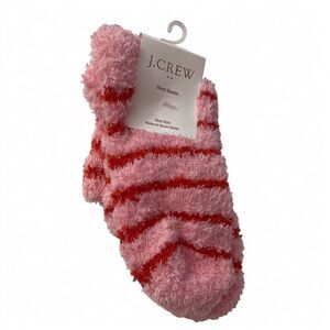 J. Crew in Resort Pink and Red Striped Cozy Boot Fuzzy Socks