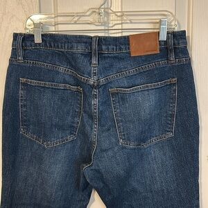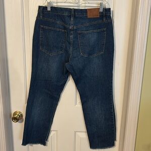 J. Crew jeans. Slim, broken-in boyfriend, unhemmed, size 30P. Leg hem is frayed.