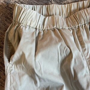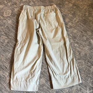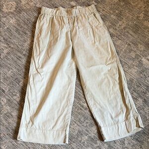 These cream-colored pants from J. Crew feature a relaxed, wide-leg silhouette with a cropped length that hits around mid-calf. Made from a lightweight fabric, they offer a comfortable and casual fit, perfect for everyday wear. The elastic waistband ensures ease of movement and a snug fit.