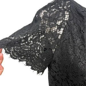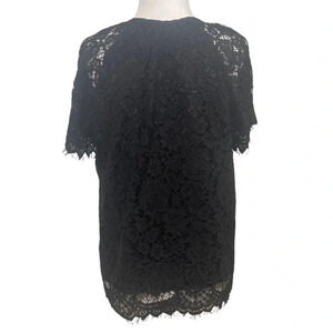 J Crew lace short sleeved blouse. Black, size Small. Perfect for the holidays. Flutter sleeves with lace that allows you to see through. Fully lined through the body. Relaxed fit. Scoop neck with keyhole opening. Viscose/nylon/cotton blend. Dry clean. Smoke free home, will ship in 1-3 business days. Holiday party, wedding, office party, shower.