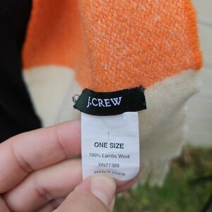 100% lambs wool scarf with wide stripes of cream and orange. In good used condition with no known flaws.