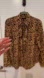 Ruffle front button up style with collar. Button sleeves. Real silk, not synthetic!! Cute leopard print ๐