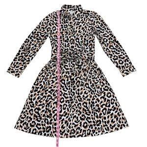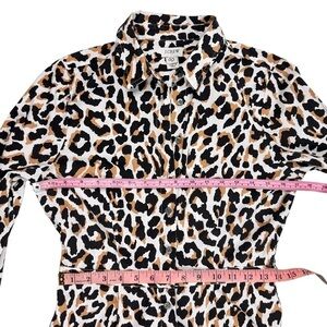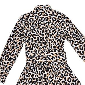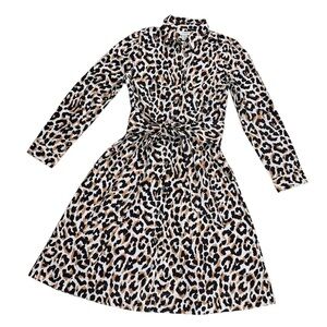 J. Crew Factory leopard/animal print front-button belted shirt dress. Pockets! Long sleeves with button cuffs. Elastic at back of waist. Cotton/elastane poplin fabric has stretch. Self-tie matching sash/belt included. Excellent used condition: no stains, holes, or pills.