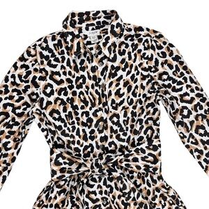 J. Crew leopard print tie-waist shirt dress pockets long sleeve buttons collar 2
