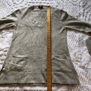 So soft J. Crew light heather gray v-neck tunic sweater with 2 front pockets, size medium, made of nylon, merino wool, alpaca and elastane in excellent pre-owned condition.