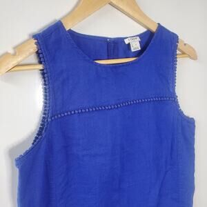 J Crew linen and Cotton blend decorative blue tank top Size 2