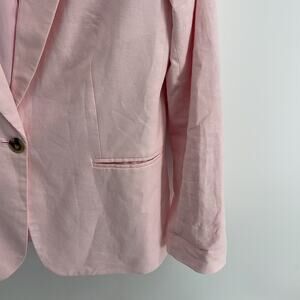J. Crew linen blend single button professional career blazer sz 8; has some self tanner around the collar but not noticeable when worn; SEE PICS