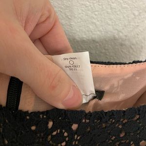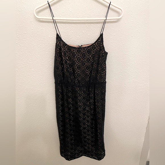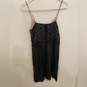Got many compliments when I wore this dress! Sexy yet understated. Spaghetti straps, lace overlay and lined with pretty pinky-peach color. Hits around knee. Great condition.