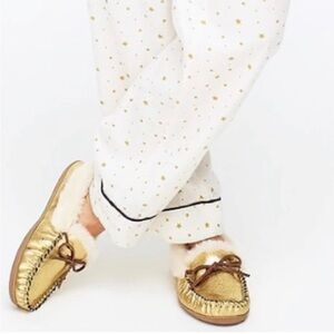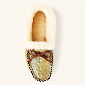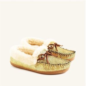 J .Crew lodge Moc Mocassins in metallic gold Soft Lining Furry & Rubber Sole 7M
