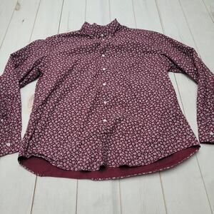 Stylish J Crew Mercantile long sleeve shirt! Maroon red with an allover white floral print. In excellent condition, size XXL