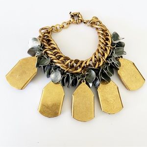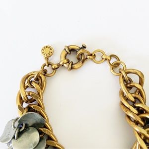 J Crew mixed metal rhinestone charm cha cha style bracelet 7.5”. Thick gold tone chain with silver tone disc charms. Large gold rhinestone charm details. Excellent preowned condition
