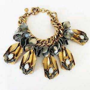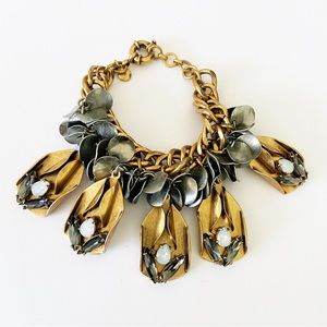 J Crew mixed metal rhinestone charm cha cha style bracelet 7.5”