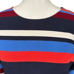 Women's J. Crew multi color striped long sleeve pullover top, size medium. This is stretchy with a 9.5" back zipper. 100% Cotton. Machine washable. Excellent like new condition and from a smoke free pet free home. Quick shipper!