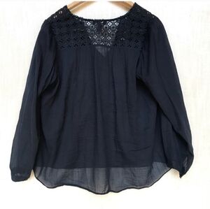 J. Crew navy blue embroidered sheer peasant blouse size 8, long sleeve lightwt