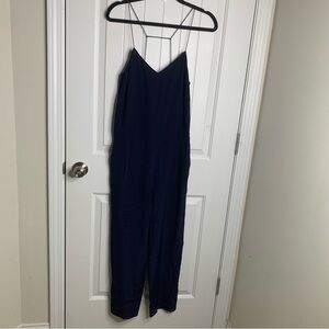 J Crew navy blue silk strappy jumpsuit size 4 has pockets minimalist preppy