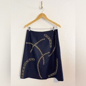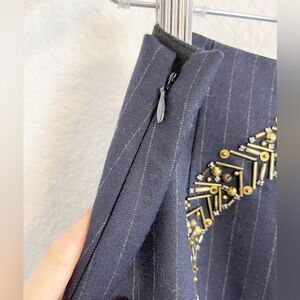 J Crew navy pin stripe pencil skirt with sequined detail. Office Siren 6. NWT