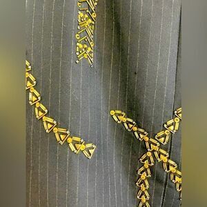 A classic pin stripe skirt with some dazzle! Retro Mad men style for the office. Wear with heels or go with white sneakers and a white t shirt. Navy with gold sequins detail. New. Waist 15, hips21”, length 23”.