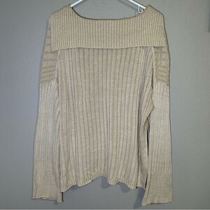 J. Crew neutral relaxed cotton linen blend collared sweater women’s size L XL