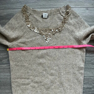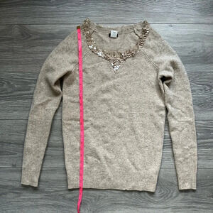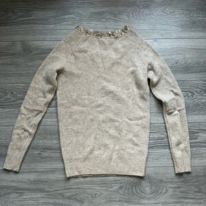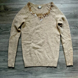 J. Crew oatmeal 100% lambs wool sequined collar long sleeve sweater Size S