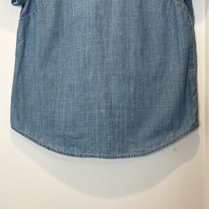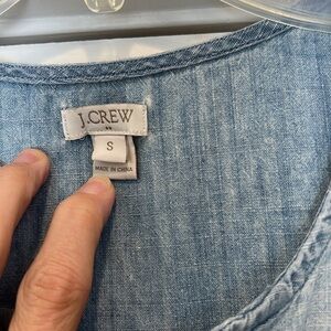 This J. Crew blouse features a stylish mandarin collar and cuffed sleeves, offering a sophisticated yet relaxed look. The top showcases a beautiful gradient effect in ombre blue, perfect for adding a touch of elegance to any casual outfit. Its loose, comfortable fit makes it an ideal choice for everyday wear.