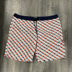 Board shorts with mesh liner. * please note * Stock image shows the same pattern - but the swim trunks vs the board shorts.