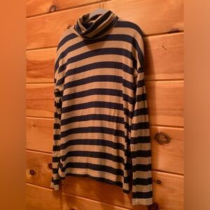 J. Crew perfect fit beige blue striped turtleneck long sleeve top size small
