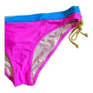 J Crew pink and blue bikini bottom. NWT. Side ties. Modest back coverage. Size medium.