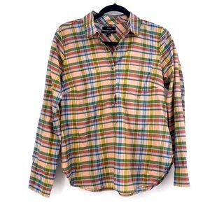 J Crew plaid cream blue women’s top size small