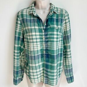J. Crew plaid flannel button pullover long sleeve top green blue size small