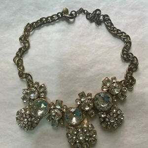 J Crew preppy flower crystal chunky statement necklace adjustable