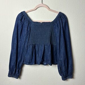 J. Crew puff sleeve chambray smocked top denim blue size small