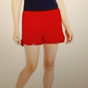 J. Crew - pull-on linen blend shorts - red - pompom trim - Small