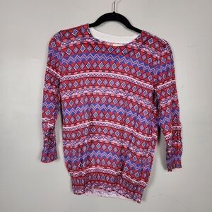J. Crew pullover sweater red pink blue size M 17.5 inches underarm to underarm 24 inches shoulder to bottom Z-1