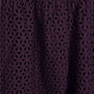 Beautiful deep purple J. Crew openwork cotton top. Fully lined, all 100% cotton. Back button closure at neck, short sleeves. Size 2. (Color is the dark purple in the first picture. Lighting made the fabric look lighter in some shots.)