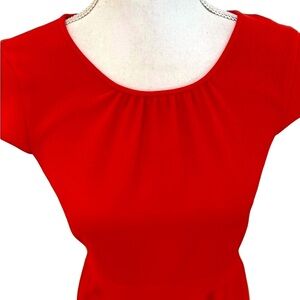 This J Crew red matte crepe cap sleeve lined dress has a defined waist. Keyhole back. Gathered neckline. Side zipper entry. Perfect for the office or work. Comes above the knee. Made of 100% polyester. Wore once. Like new.